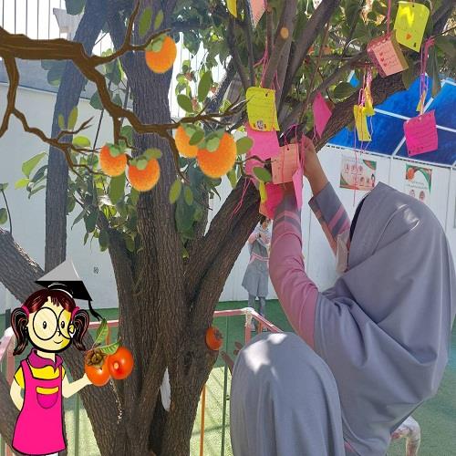 تمرین شکرگزاری از نعمات خداوند در زنگ مهارتهای زندگی و نوشتن نعمات و اتصال به درخت خرمالو