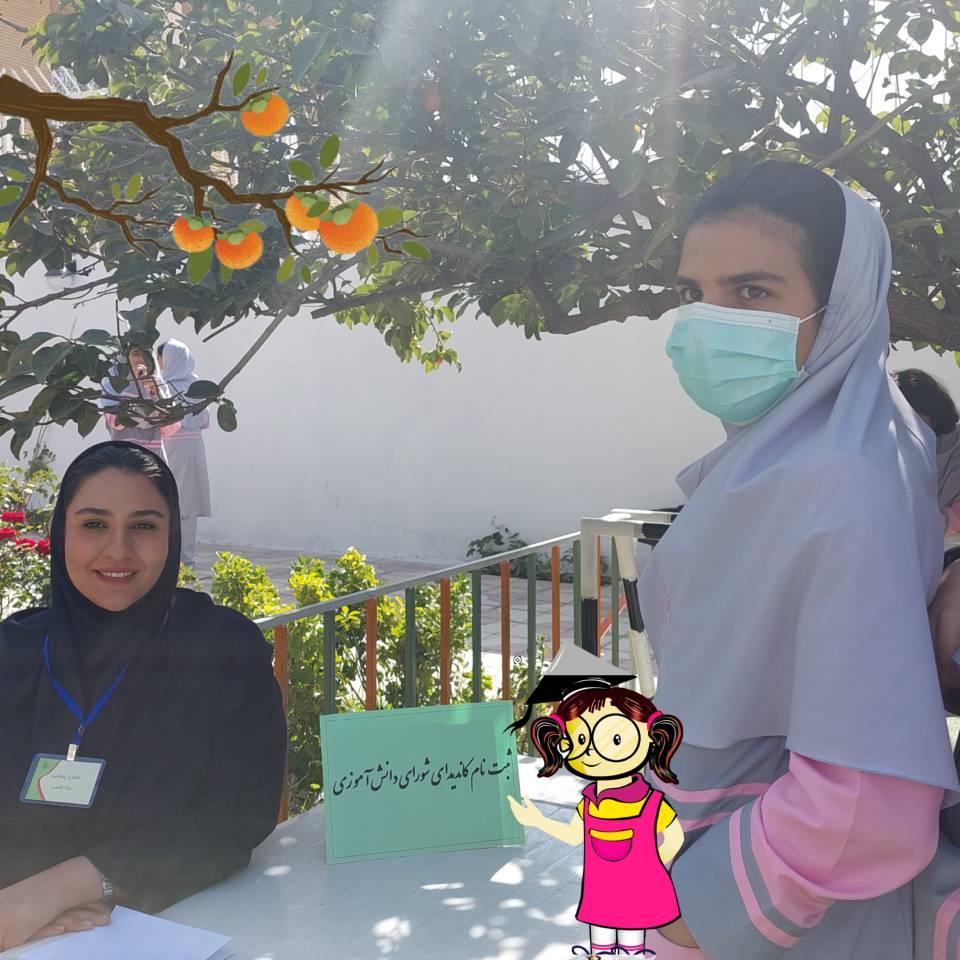 ثبت نام جهت کاندیداتوری شورای دانش آموزی در زنگ تفریح زیردرخت خرمالو