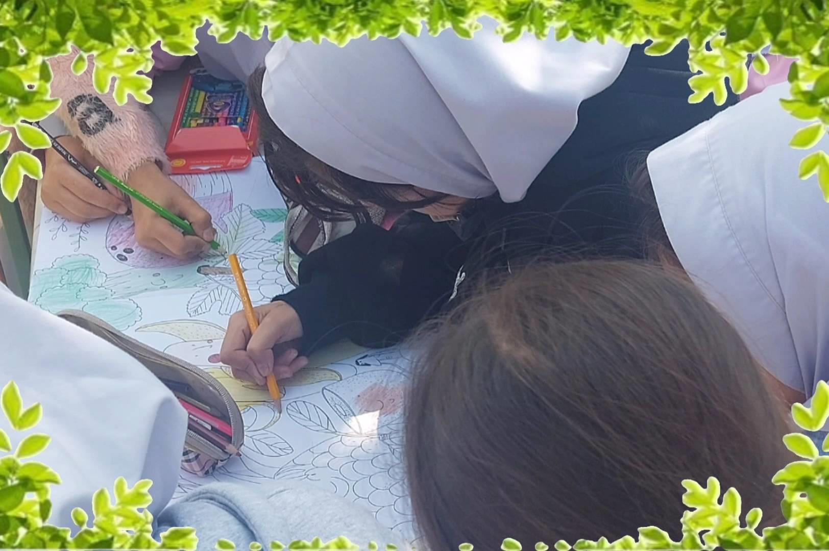 رنگ آمیزی درنگ آمیزی دسته جمعی بچه های رنگر رنگی آذر زیردرخت خرمالو در زنگ تفریح